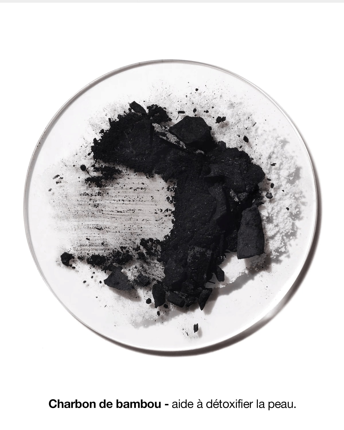 Formulé avec de la poudre de charbon de bambou et de l’argile blanche.
