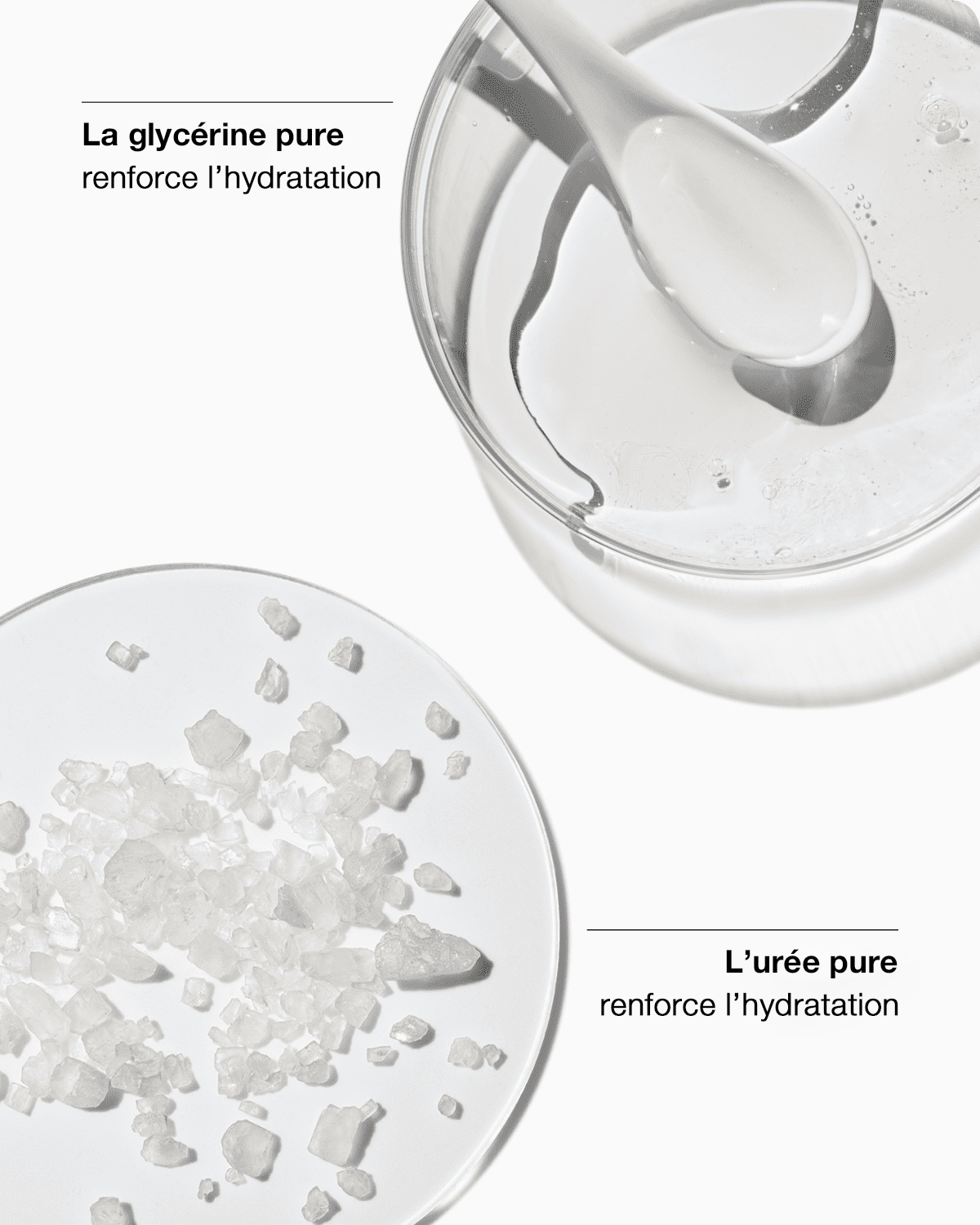 L’urée est un humectant qui est présent naturellement dans la peau. Elle aide la peau à retenir l’eau et à emprisonner l’humidité afin de l’aider à rester hydratée et équilibrée.