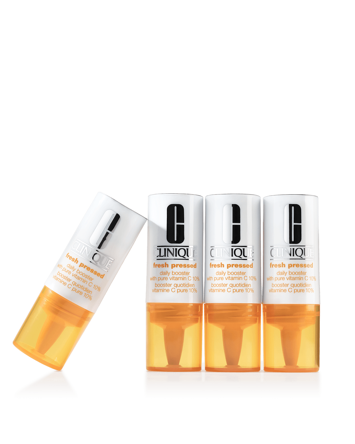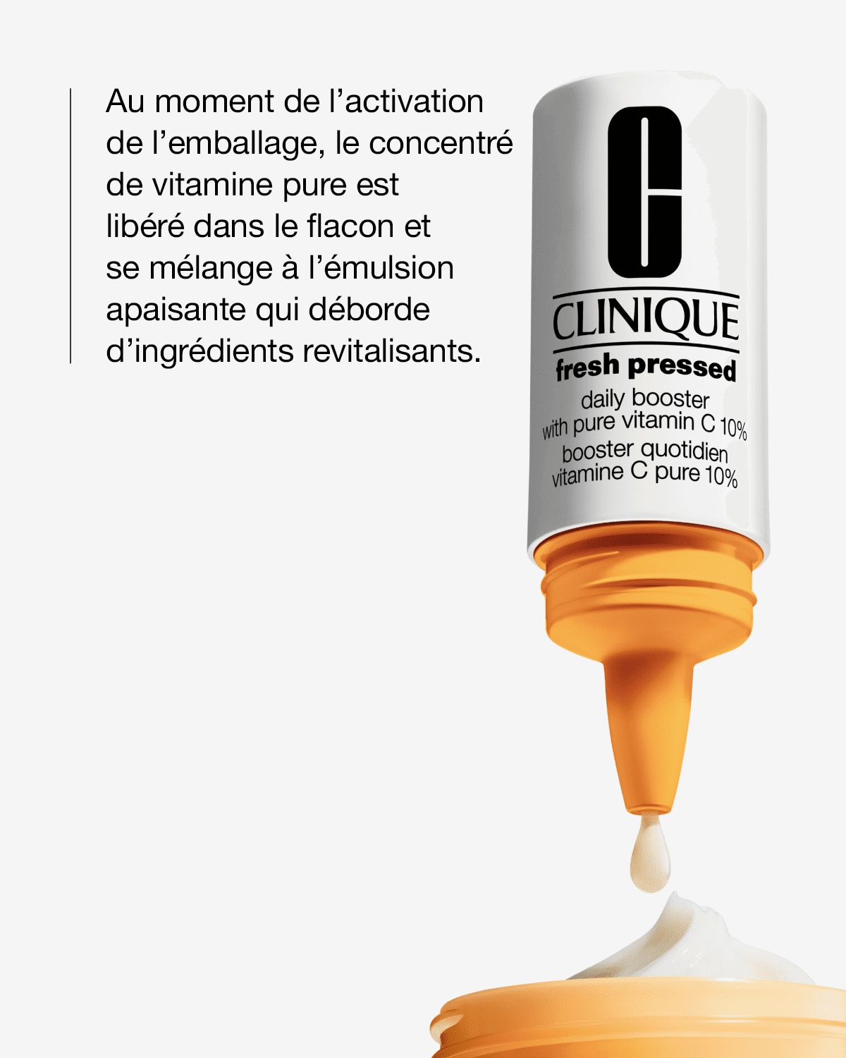 Accueil / Fresh Pressed Amplificateur quotidien avec vitamine C pure à 10 % Clinique Fresh Pressed™ (179) Lire les commentaires Préoccupation de peau Anti-vieillissement, Teint terne Avantages Aide à éclaircir et régénérer l’apparence de la peau. Principaux ingrédients 10 % de vitamine CPour donner un coup d’éclat à la peau.Faits concernant la formuleExpertise cliniqueTesté par des dermatologuesSoumis à des tests d’allergieSans parfumSansParfumParabènePhtalateGlutenHuileAlcool qui dessècheCouleurs synthétiquesLaurylsulfate de sodiumLaureth sulfate de sodium Type de peau Très sèche à sèche, sèche à mixte, mixte à grasse, grasse 112,00 $ CA84,00 $ CA 4 x 8,5 ml4 x 8,5 mlS'inscrire Expédition gratuite des commandes d’abonnement. Quantité 1 Chargement...Détails du produitUn ensemble de 4 boosters enrichis de vitamine C. Mélangez-le à votre hydratant pour une peau plus éclatante. Testé par des dermatologues. Soumis à des tests d’allergie. 100 % sans parfum.Partagez l’amour.Montrez-nous vos favoris Clinique.